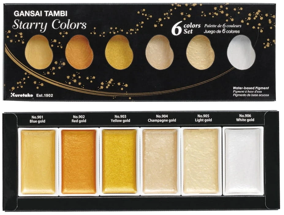 KURETAKE Farby w kostkach Gansai Tambi 6 kol Starry Colors