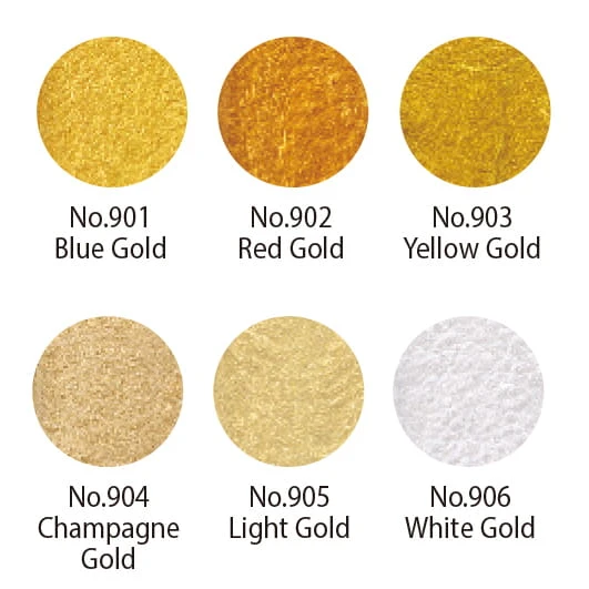 - Zestaw "Starry Colors" zawiera pięknie odbijające światło metaliczne farbki w odcieniach: 901 Blue Gold, 902 Red Gold, 903 Yellow Gold, 904 Champagne Gold, 905 Light Gold, 906 White Gold.