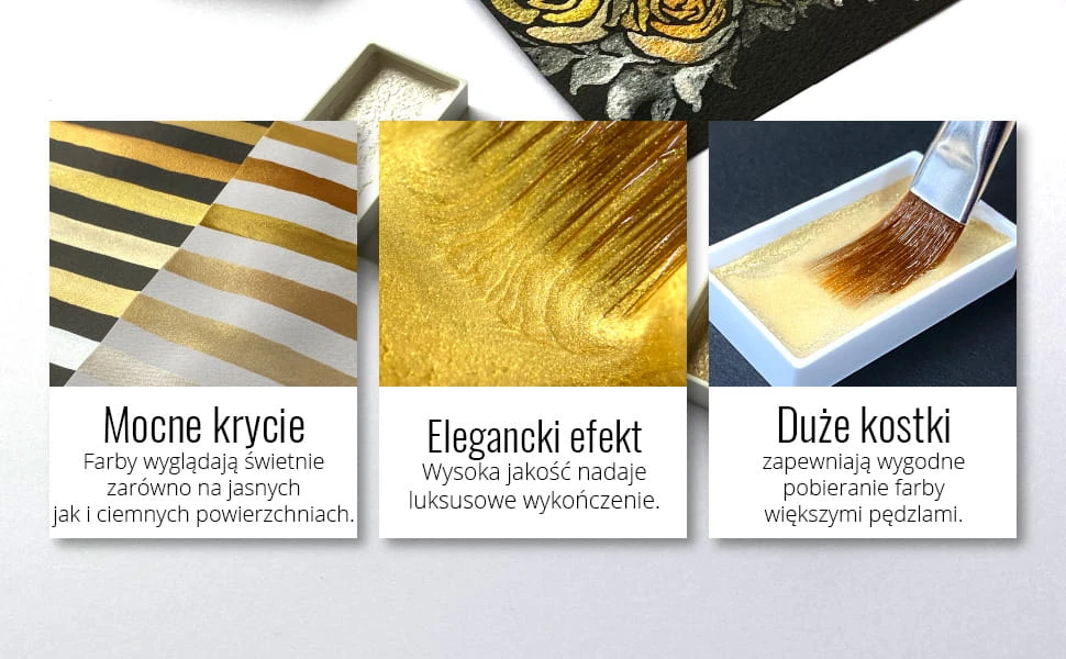 - Świetnie się mieszają. Doskonałe do rozmaitych technik wodnych, ilustracji, tradycyjnego malarstwa sumi-e czy etagami.