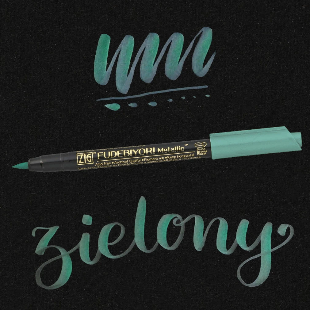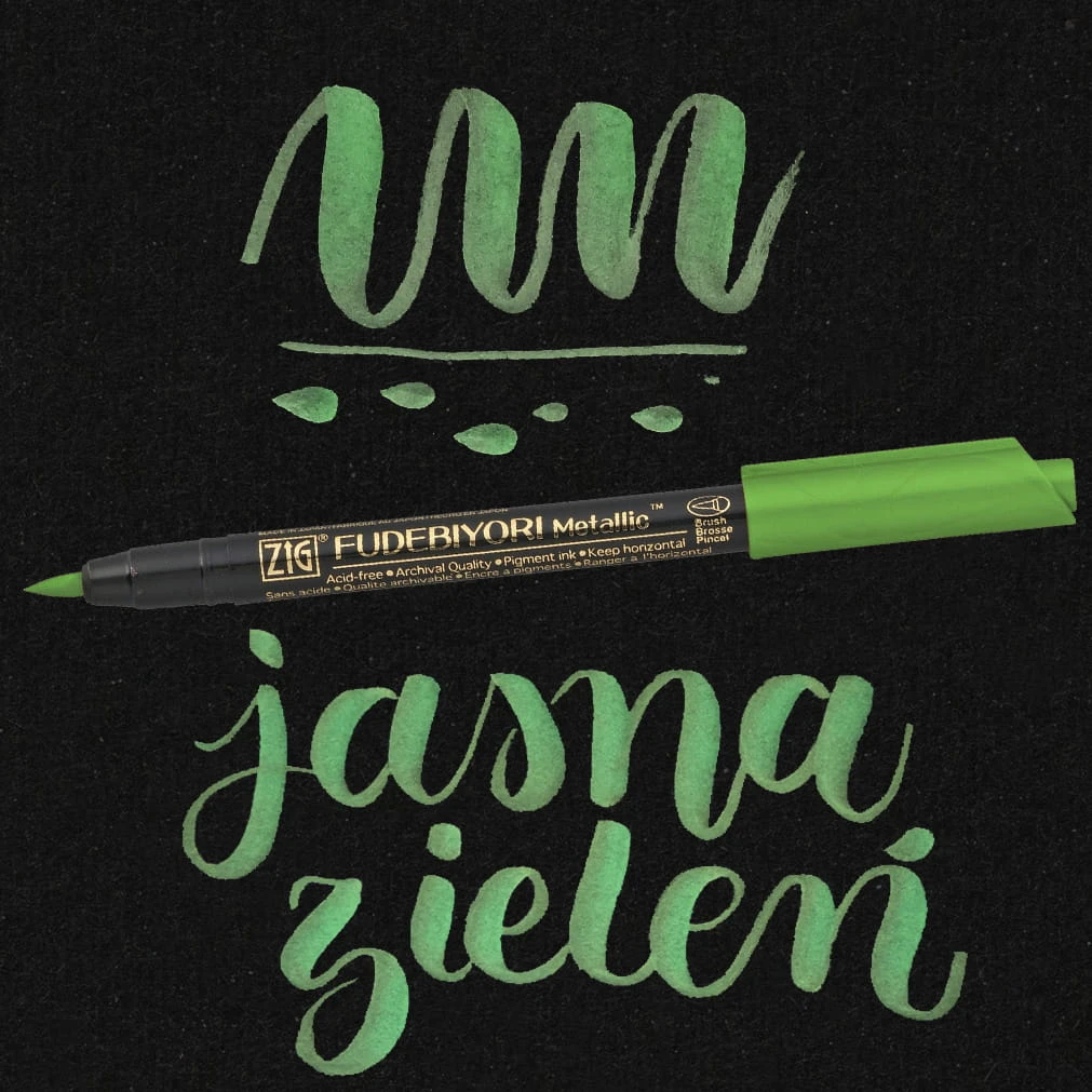 - Pędzelkowa, elastyczna końcówka i tusz pigmentowy na bazie wody tworzą świetne połączenie - metaliczne kolory efektownie połyskują, świetnie prezentują się zarówno na jasnym jak i na ciemnym papierze.