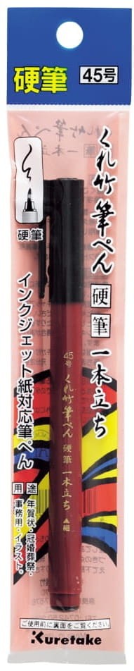 - Brush Pen Kuretake No. 45 Kouhitsu Ippondachi to pisak pędzelkowy/brush pen ze średnio twardą, sprężystą końcówką.
