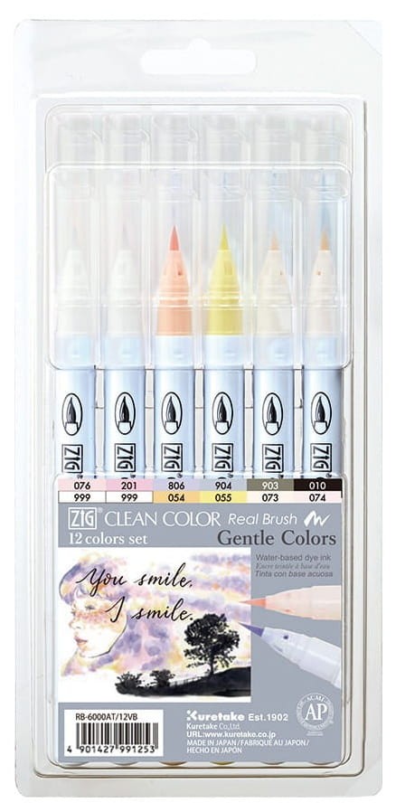 KURETAKE Pisaki Zig Clean Color Real Brush 12 kol Gentle Colors