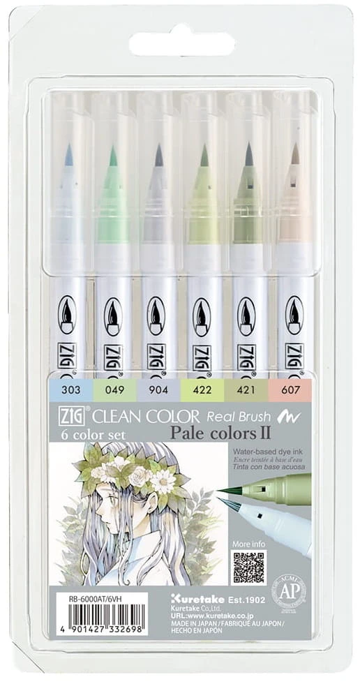 KURETAKE Pisaki Zig Clean Color Real Brush 6 kol Pale Colors II