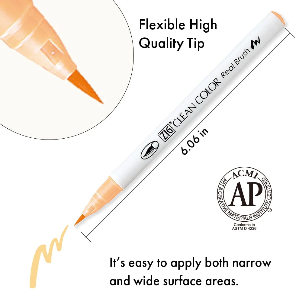 - Clean Color Real Brush firmy Kuretake to pisak wyjątkowy - posiada prawdziwą pędzelkową końcówkę, wykonaną z syntetycznego włosia.