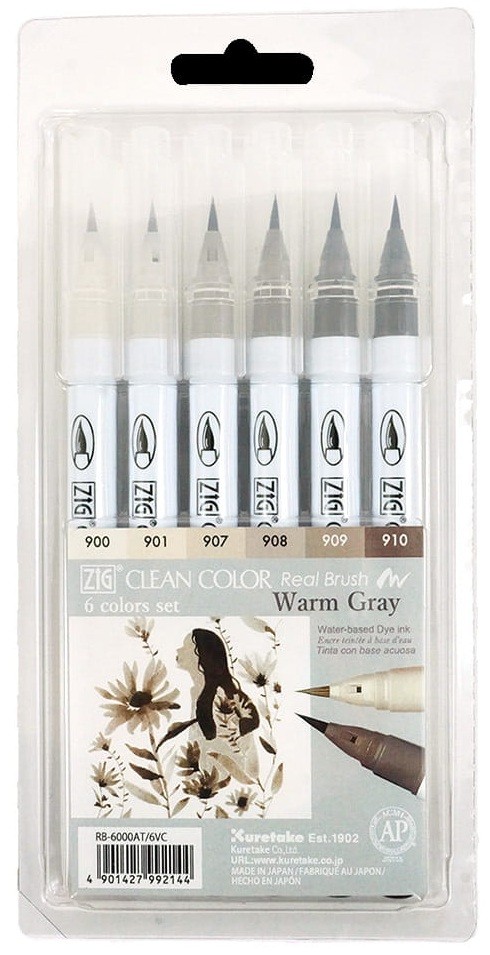 KURETAKE Pisaki pędzelkowe ZIG Clean Color Real Brush 6 szt Warm Gray