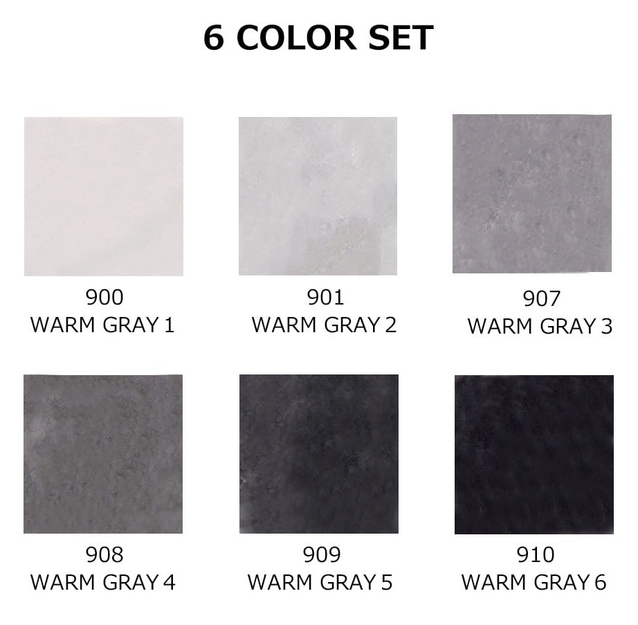 - Kolory w zestawie: 900 Warm Gray 1, 901 Warm Gray 2, 907 Warm Gray 3, 908 Warm Gray 4, 909 Warm Gray 5, 910 Warm Gray 6