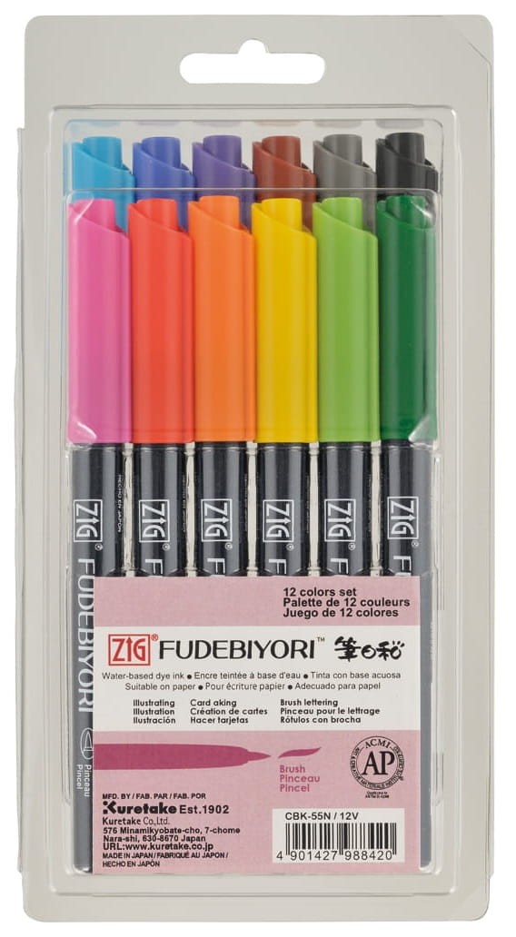 KURETAKE Pisaki pędzelkowe brush Fudebiyori 12 kolorów