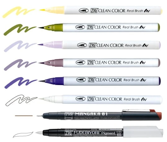- pisak Fudebiyori Pigment Milky White - jedyny niemetaliczny pigmentowy pisak w gamie Fudebiyori. Służy do rozjaśniania już namalowanych elementów, oraz stworzenie pastelowych odcieni o innym niż rozwodniony tusz barwnikowy efekcie. Jest dobrze widoczny na kolorowych i czarnych papierach.