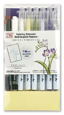 KURETAKE Zestaw pisaki pędzelkowe Watercolor Flowers Gradation