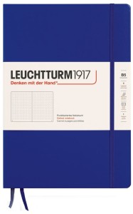 Notatniki Leuchtturm1917 z klasycznej serii Composition to wysokiej klasy produkt w rozmiarze B5 i twardej oprawie. Papier ma odcień kości słoniowej, jest bezkwasowy i bez optycznych wybielaczy, idealny do pisania piórem. Wewnątrz znajduje się pełen zestaw akcesoriów umożliwiających łatwą archiwizację: komplet naklejek do opisania okładki i grzbietu, kieszeń na luźne notatki, strona tytułowa oraz pusta tabela spisu do opisania zawartości ponumerowanych stron. Dodatkowym atutem jest szyty grzbiet umożliwiający rozłożenie notatnika na płasko.
