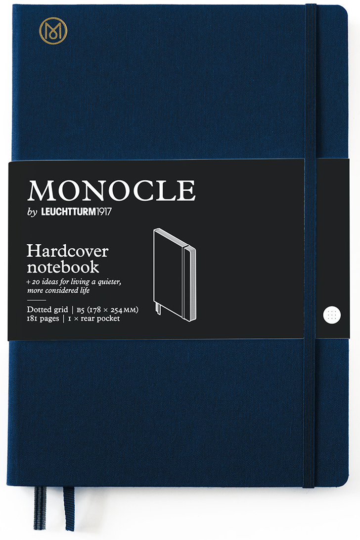 Wyjątkowa edycja limitowana zaprojektowana we współpracy z międzynarodowym, prestiżowym magazynem lifestyle Monocle. Ekskluzywny notatnik edycji Monocle to praktyczny pomocnik organizacji. Elegancki, w twardej oprawie i ze specjalnym, wytłoczonym, złotym monogramem. Przewodnik Monocle zawiera 20 pomysłów na spokojne, bardziej rozważne życie. Papier ma odcień kości słoniowej, jest bezkwasowy i bez optycznych wybielaczy, idealny do pisania piórem. Dodatkowym atutem jest szyty grzbiet umożliwiający rozłożenie notatnika na płasko.