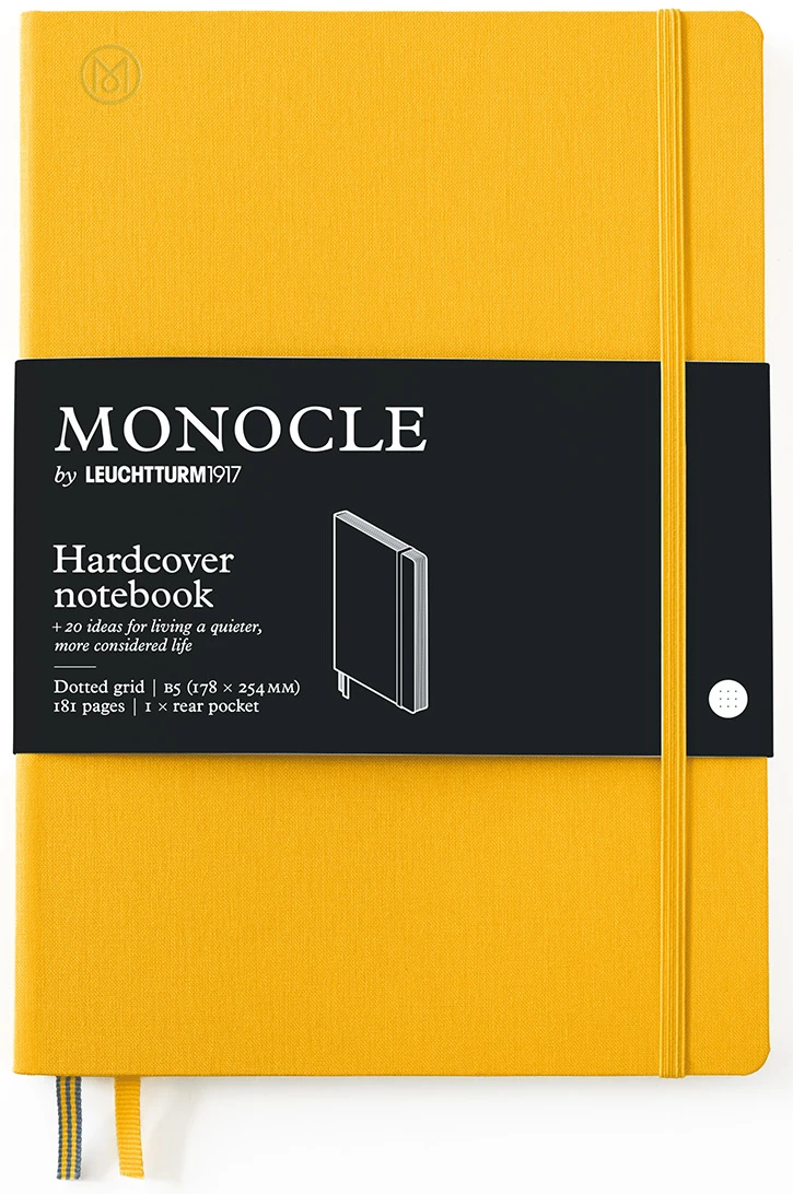 Wyjątkowa edycja limitowana zaprojektowana we współpracy z międzynarodowym, prestiżowym magazynem lifestyle Monocle. Ekskluzywny notatnik edycji Monocle to praktyczny pomocnik organizacji. Elegancki, w twardej oprawie i ze specjalnym, wytłoczonym, złotym monogramem. Przewodnik Monocle zawiera 20 pomysłów na spokojne, bardziej rozważne życie. Papier ma odcień kości słoniowej, jest bezkwasowy i bez optycznych wybielaczy, idealny do pisania piórem. Dodatkowym atutem jest szyty grzbiet umożliwiający rozłożenie notatnika na płasko.