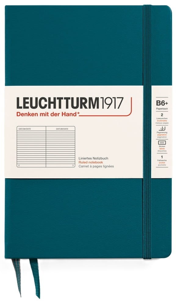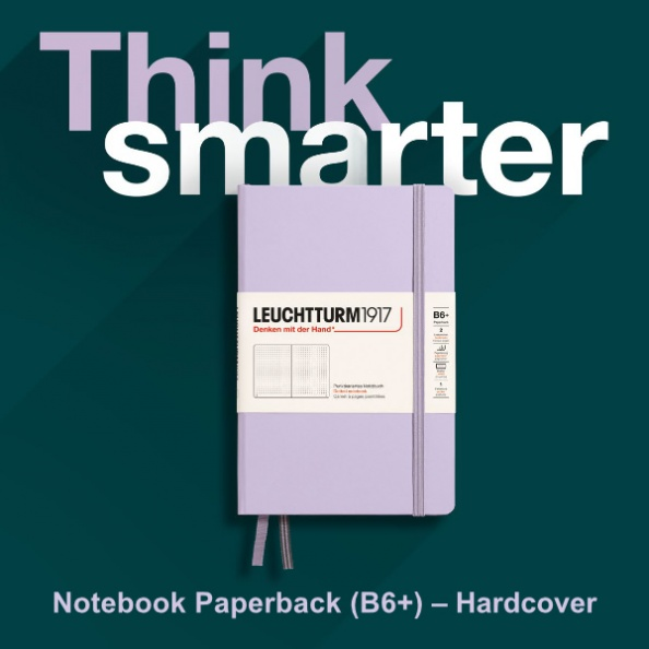 Teraz notatnik w formacie Paperback (B6+) jest również dostępny w twardej oprawie! Każdy, kto często jest w podróży i chce spontanicznie zapisywać swoje myśli, doceni zalety kompaktowego notatnika z dużą ilością wolnego miejsca. Format Paperback mieści się w każdej kieszeni – jest zawsze gotowy, gdy go potrzebujesz. Nowa twarda oprawa nie tylko chroni zawartość, ale również służy jako stabilna podkładka do pisania. Naturalnie, nowe notatniki są wyposażone we wszystkie wyróżniające LEUCHTTURM1917 detale.