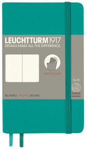 Notatniki Leuchtturm1917 z serii Pocket to wysokiej klasy produkt w rozmiarze A6 i miękkiej oprawie. Papier ma odcień kości słoniowej, jest bezkwasowy i bez optycznych wybielaczy, idealny do pisania piórem. Wewnątrz znajduje się pełen zestaw akcesoriów umożliwiających łatwą archiwizację: komplet naklejek do opisania okładki i grzbietu, kieszeń na luźne notatki, strona tytułowa oraz pusta tabela spisu do opisania zawartości ponumerowanych stron. Dodatkowym atutem jest szyty grzbiet umożliwiający rozłożenie notatnika na płasko.
