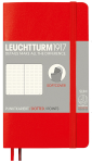 Notatniki Leuchtturm1917 z serii Pocket to wysokiej klasy produkt w rozmiarze A6 i miękkiej oprawie. Papier ma odcień kości słoniowej, jest bezkwasowy i bez optycznych wybielaczy, idealny do pisania piórem. Wewnątrz znajduje się pełen zestaw akcesoriów umożliwiających łatwą archiwizację: komplet naklejek do opisania okładki i grzbietu, kieszeń na luźne notatki, strona tytułowa oraz pusta tabela spisu do opisania zawartości ponumerowanych stron. Dodatkowym atutem jest szyty grzbiet umożliwiający rozłożenie notatnika na płasko.