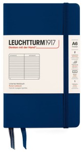 Notatniki Leuchtturm1917 z serii Pocket to wysokiej klasy produkt w rozmiarze A6 i twardej oprawie. Papier ma odcień kości słoniowej, jest bezkwasowy i bez optycznych wybielaczy, idealny do pisania piórem. Wewnątrz znajduje się pełen zestaw akcesoriów umożliwiających łatwą archiwizację: komplet naklejek do opisania okładki i grzbietu, kieszeń na luźne notatki, strona tytułowa oraz pusta tabela spisu do opisania zawartości ponumerowanych stron. Dodatkowym atutem jest szyty grzbiet umożliwiający rozłożenie notatnika na płasko. Dzięki małemu rozmiarowi notatnik zmieści się do każdej małej torby, a nawet do kieszeni.