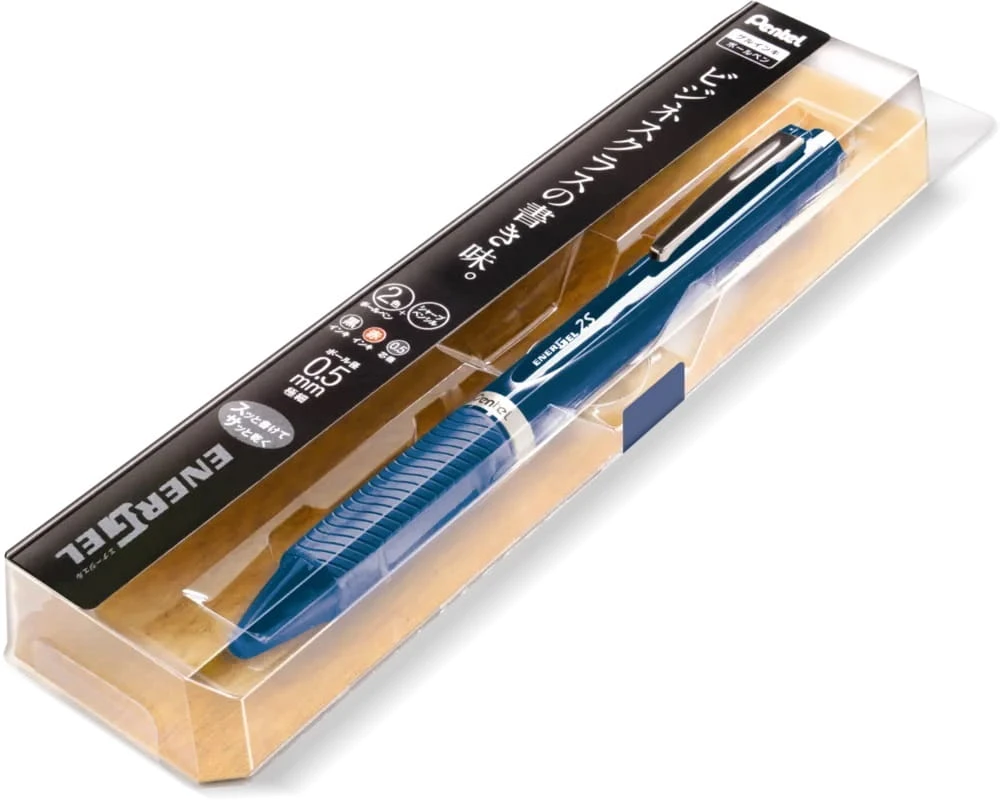 W intrygującym opakowaniu zamknęliśmy prawdziwy majstersztyk piśmienniczy. Nie dość, że nasz EnerGel to pióro najwyższej jakości interesujące pod względem designu, to skrywa wiele możliwości. W granatowej obudowie, oprócz wkładu koloru czarnego i czerwonego, znajdziemy również ołówek 0,5 mm! Taki zestaw wniesie mnogość zastosowań i powiew świeżości do przestrzeni biura, szkoły czy pracowni.