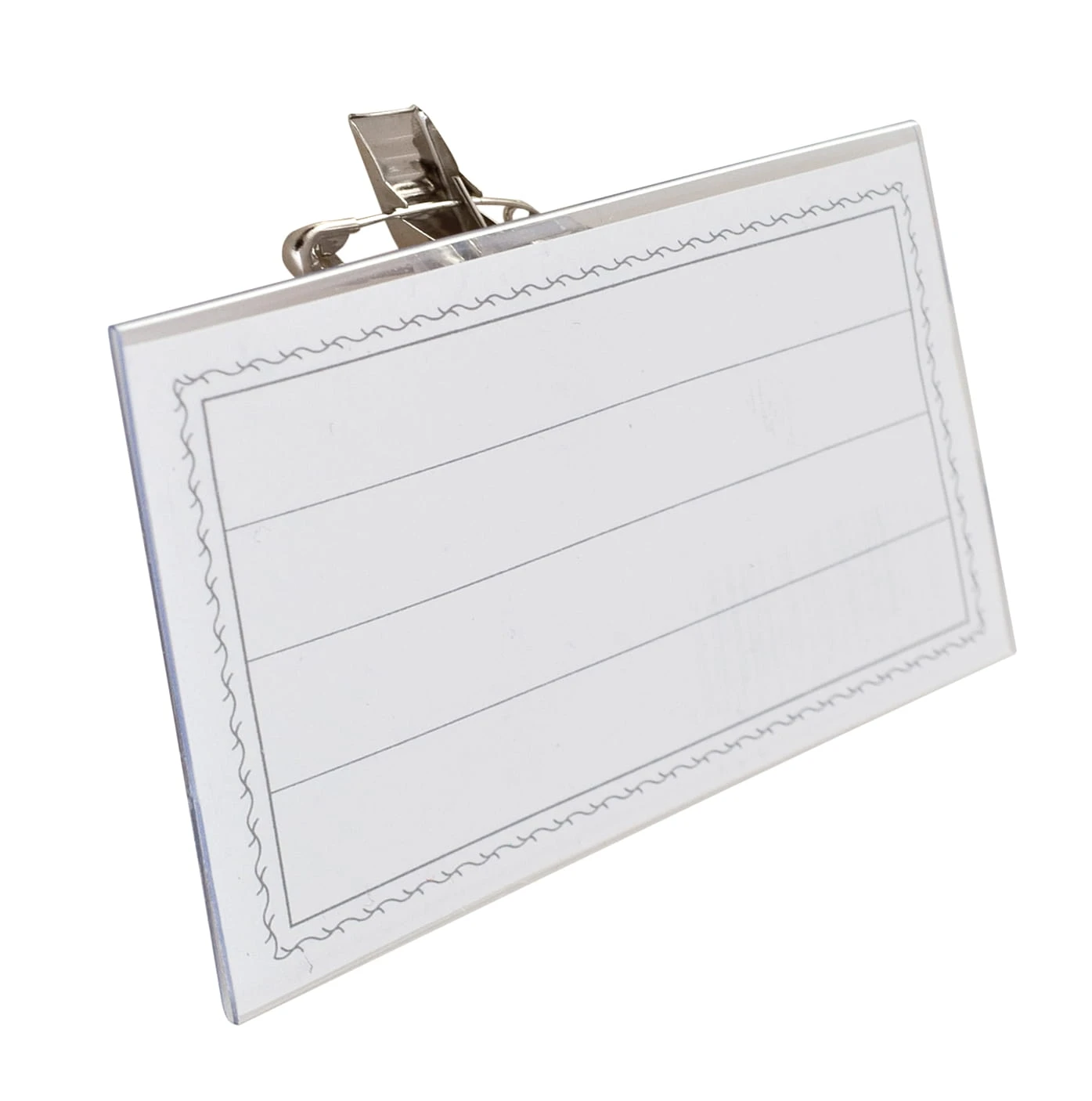 - Identyfikator z przezroczystego, sztywnego tworzywa.