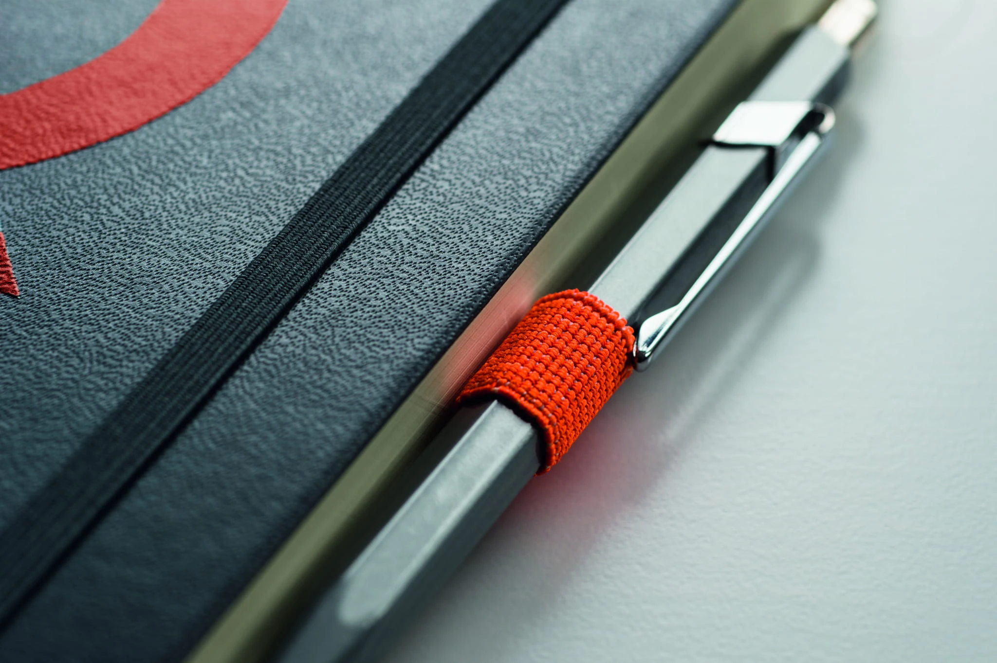 Uchwyt jest samoprzylepny, do zamontowania wewnątrz okładki notatnika. Dostępna jest cała gama kolorystyczna dopasowana do notatników Leuchtturm1917.