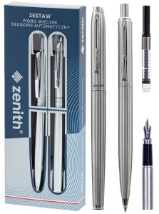ZENITH Komplet pióro + długopis Silver w etui SREBRNY