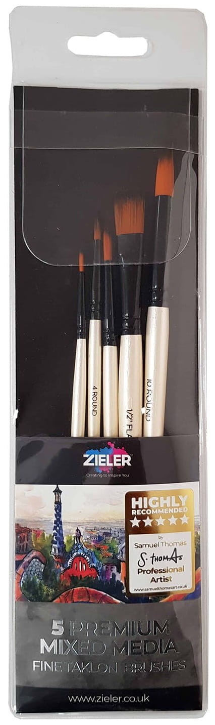 ZIELER Pędzle pędzelki do różnych farb Mixed Media 5 sztuk