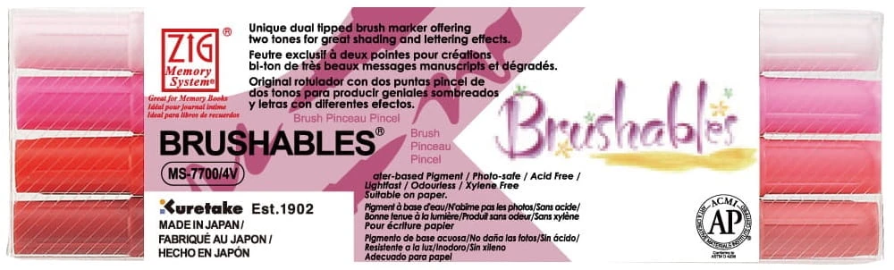 ZIG Kuretake Pisak pędzelkowy brush pen do kaligrafii 4 kolory Reds