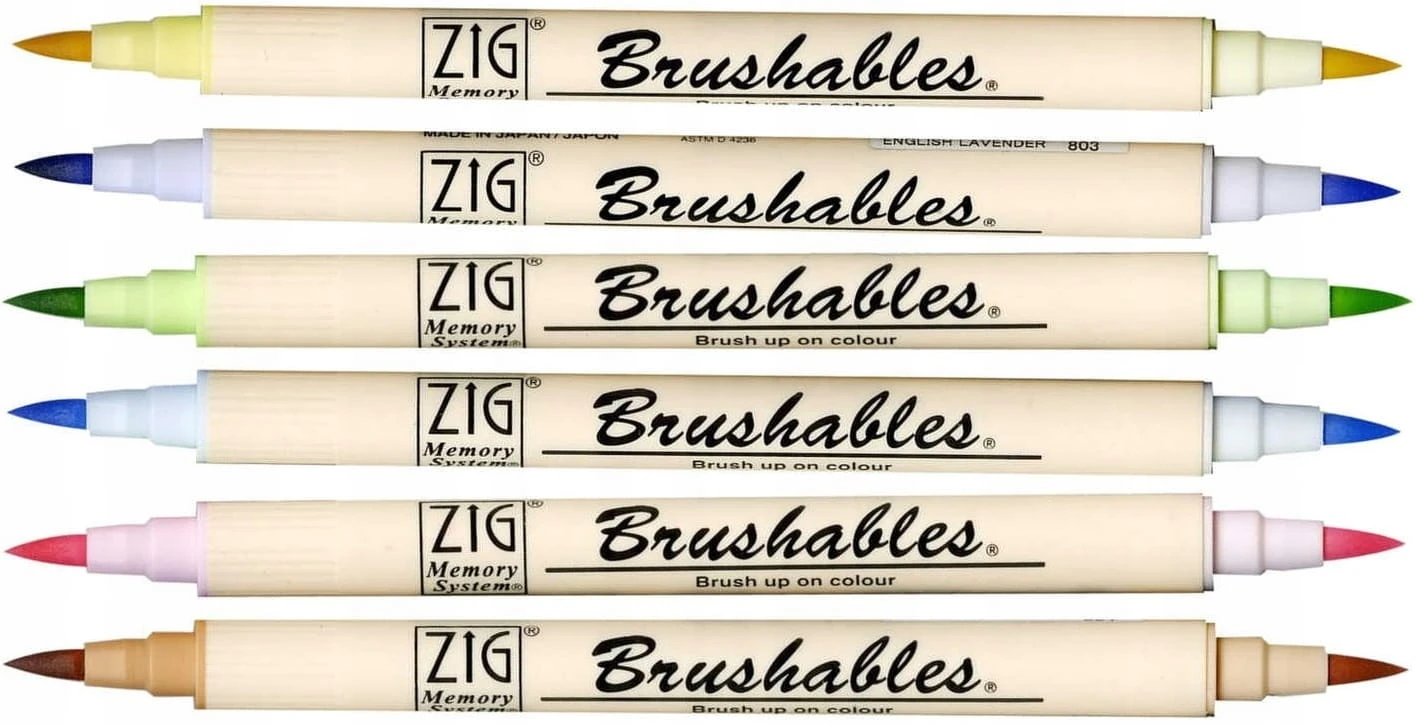 ZIG Kuretake Pisak pędzelkowy brush pen do kaligrafii 6 kol PASTEL
