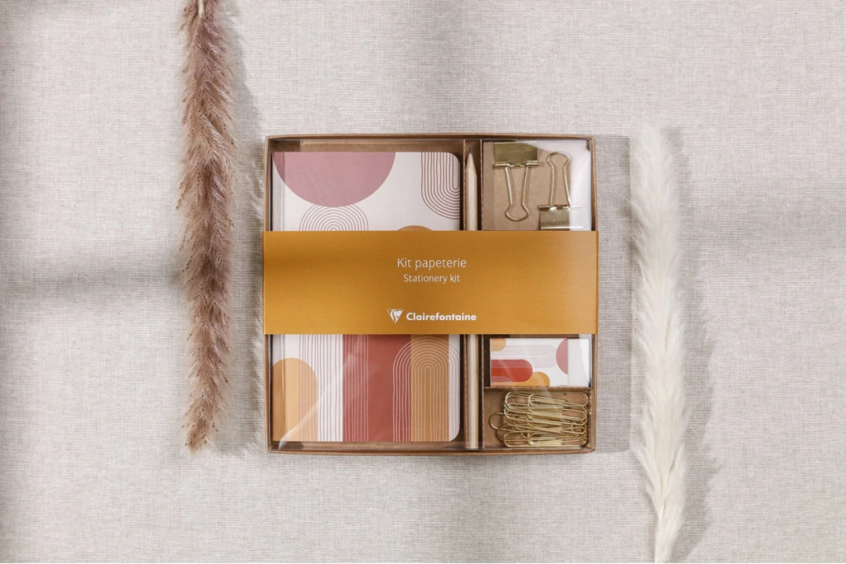 - Elegancki i stylowy zestaw papierniczo-piśmienniczy z notesem w linię marki Clairefontaine z kolekcji Terracotta.