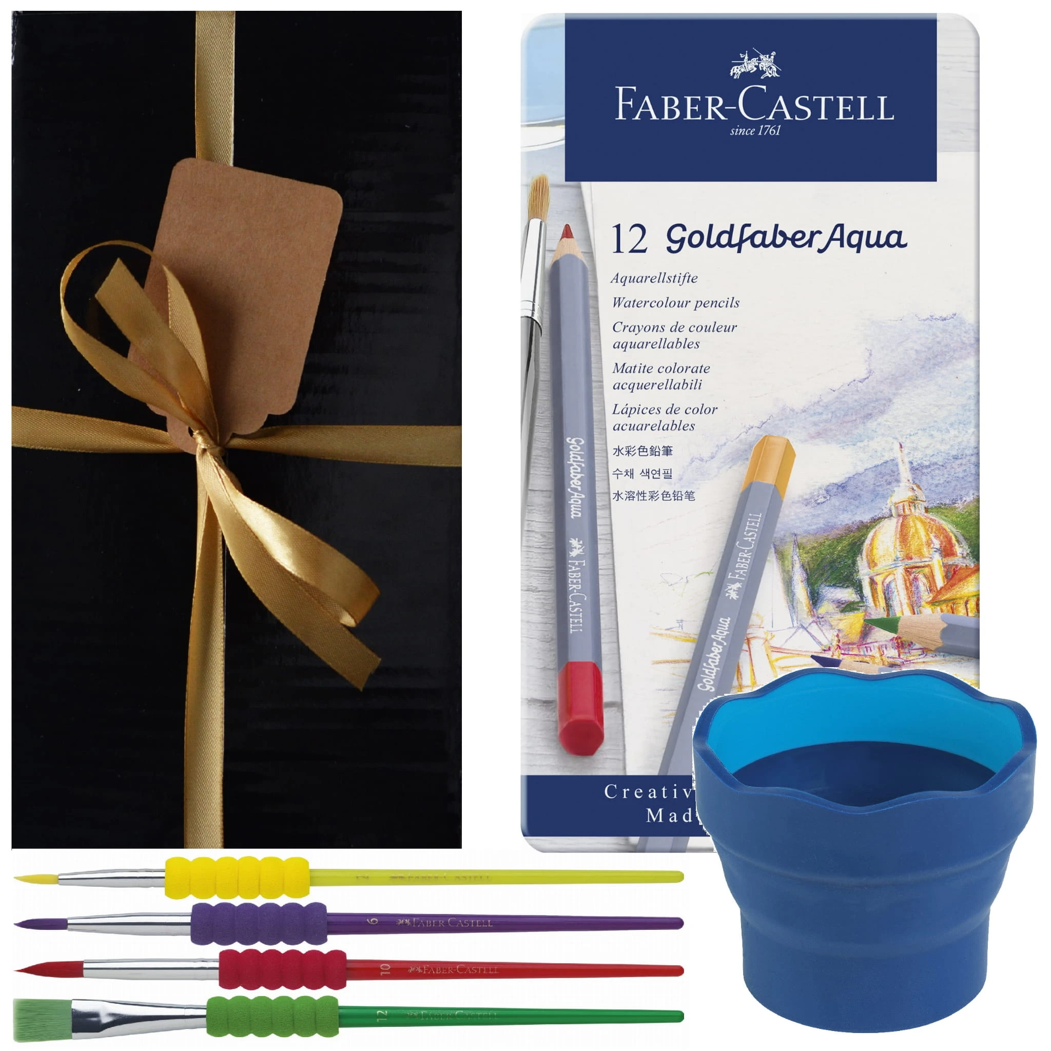 Zestaw prezentowy kredki akwarelowe kubek pędzelki Faber-Castell