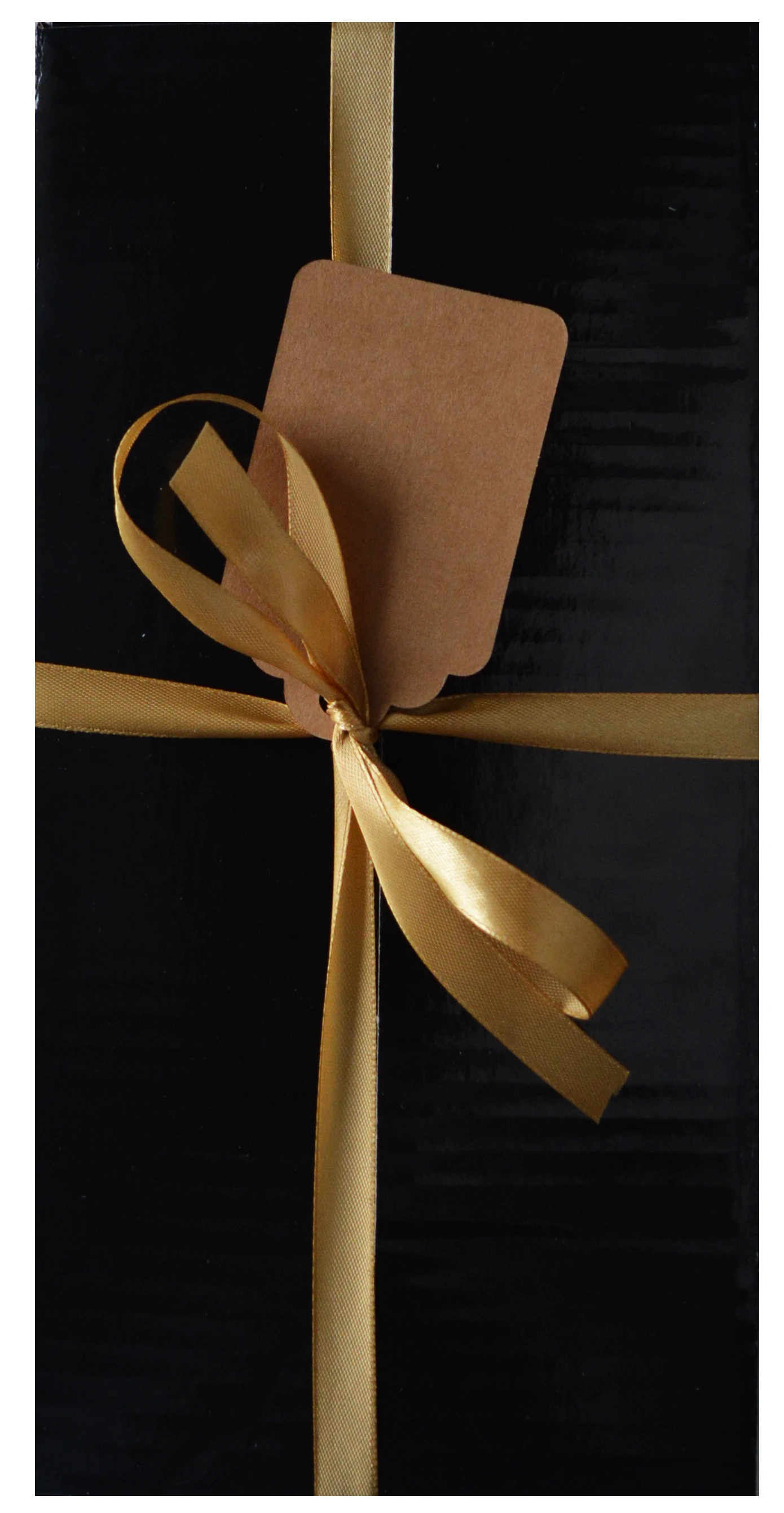 - Całość jest udekorowana złotą wstążką związaną w kokardkę, oraz prezentową zawieszką.