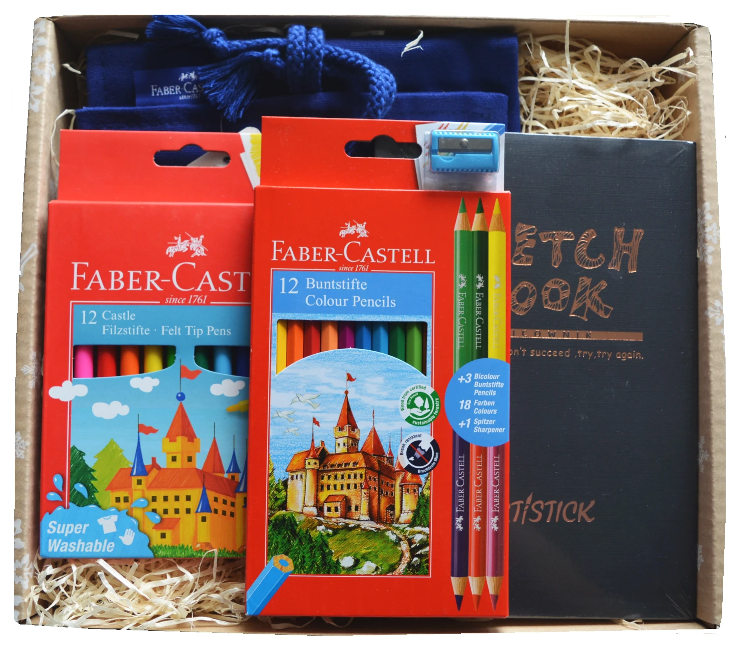 Zestaw prezentowy kredki flamastry piórnik szkicownik Faber-Castell