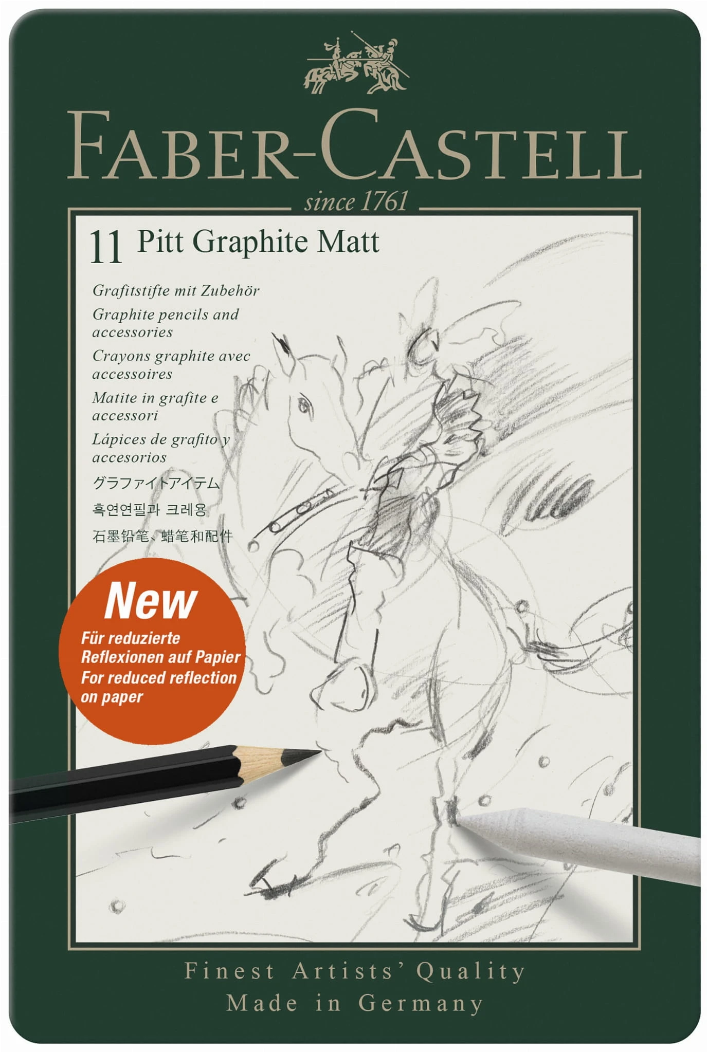 - Zestaw do szkicowania Matt 11 sztuk, zawierający: 8 ołówków Pitt Graphite Matt o stopniach twardości: HB, 2B, 4B, 6B, 8B, 10B, 12B i 14B, wiszer do papieru, gumkę i metalową temperówkę pojedynczą. Ołówki grafitowe są odpowiednie nie tylko do pisania, ale też szkicowania i rysowania. Ultra-matowe grafitowe wykończenie dla zmniejszenia odbicia światła na papierze. Najwyższej jakości wartość tonalna dla uzyskania maksymalnego efektu głębi. Miękka i gładka aplikacja. Szczególnie nadają się do monochromatycznych prac grafitowych. Doskonała odporność na pękanie. Produkcja neutralna pod względem emisji dwutlenku węgla. Drewno z certyfikowanego zrównoważonego leśnictwa. Przyjazny dla środowiska lakier na bazie wody.